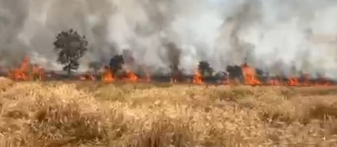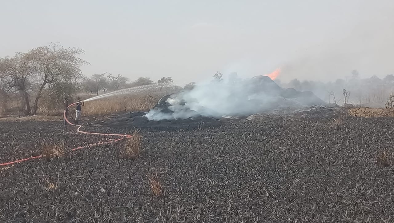 टेकाडी शिवारात भीषण आग; शंभर एकरातील गव्हाचे पीक राख